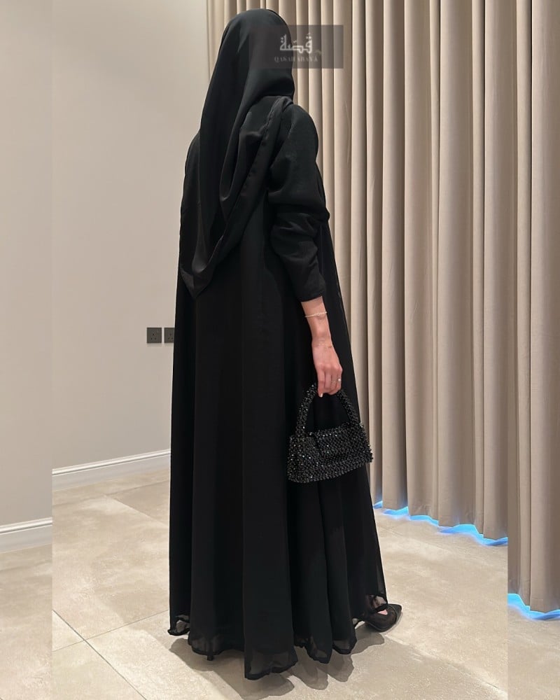 القماش: شيفون كوري أسود مبطن (غير شفافة)