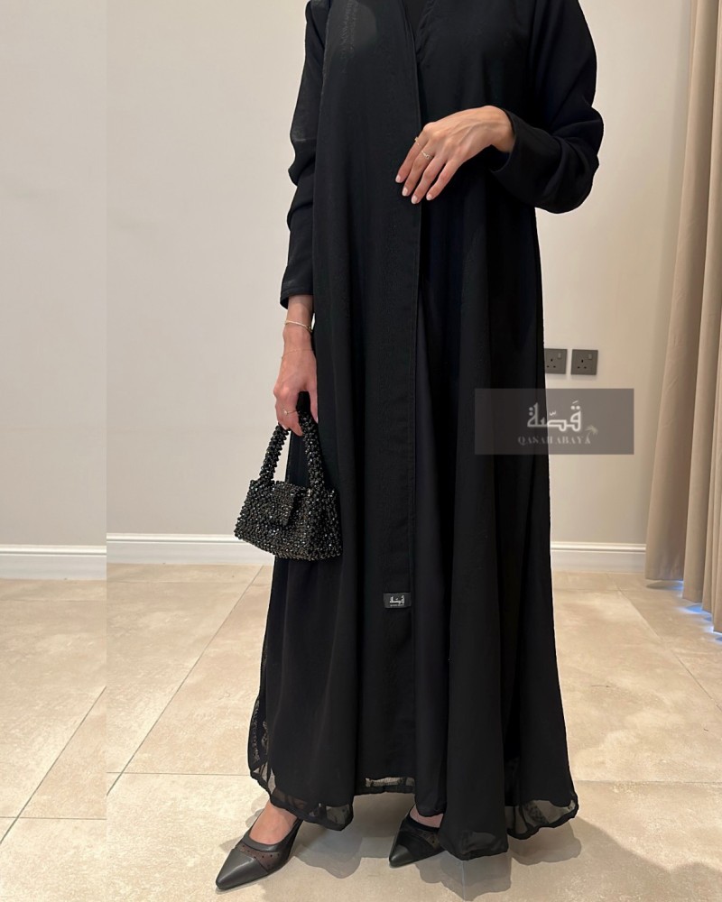 عباية صيفية شيفون مزين بخطوط طولية قصة A (كلوش)