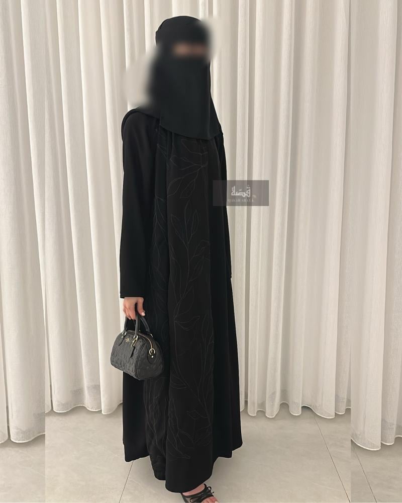 ملاحظة: موديل العباية جهة التطريز تكون أوسع من الجهة الأخرى