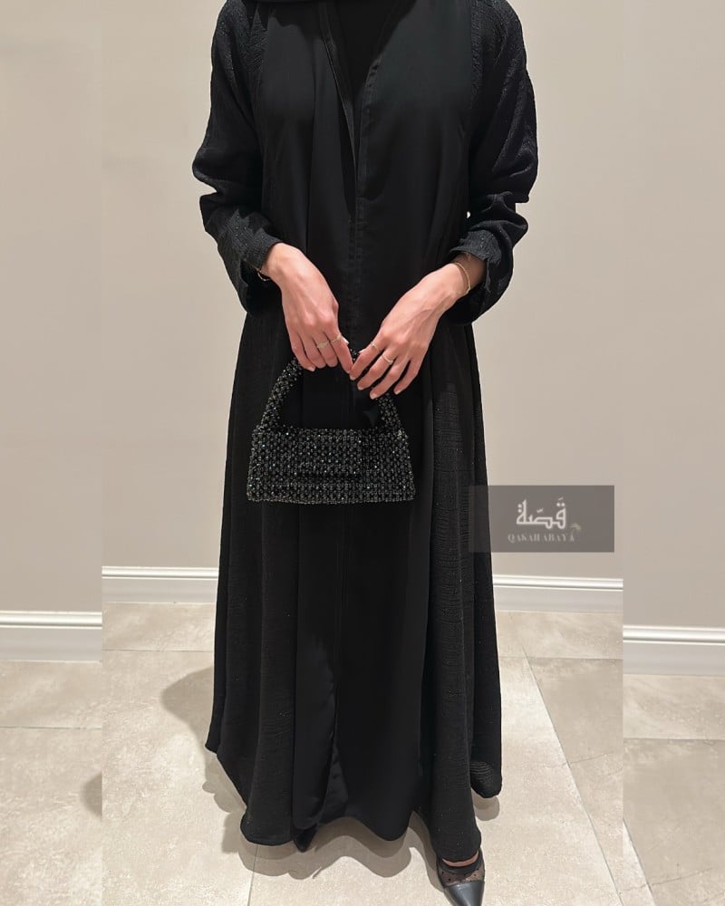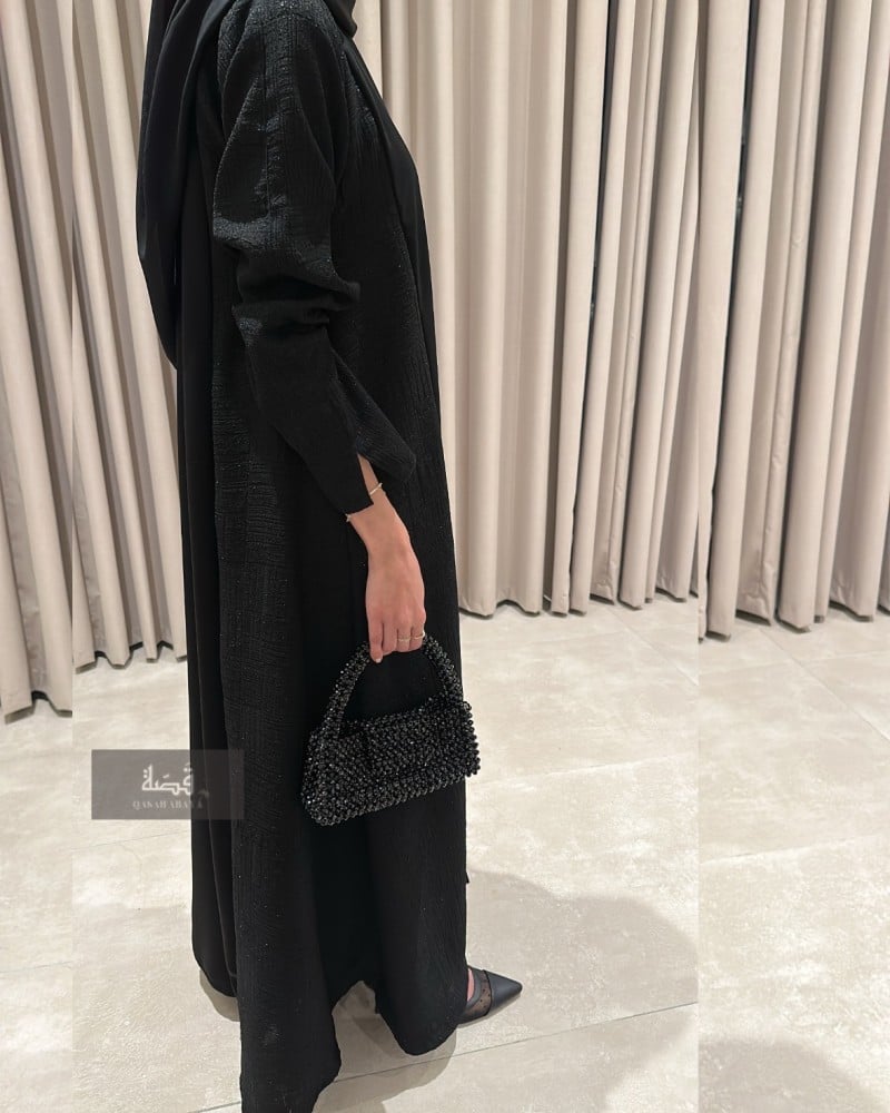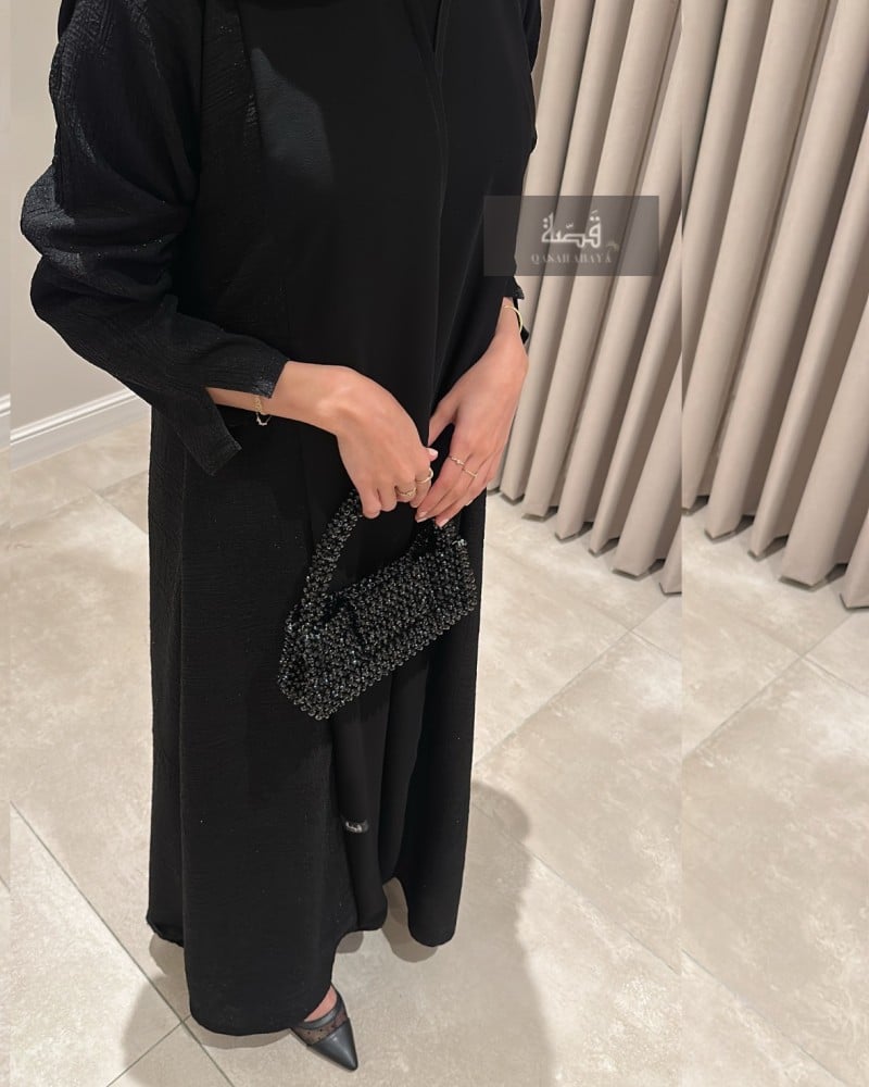 القماش: كريب ملكي كوري أسود + كريب لامع أسود خفيف مطرز