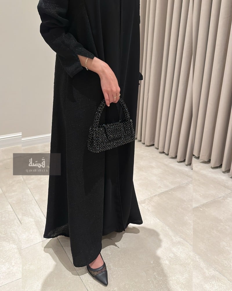 عباية مناسبات صيفية بتدخيلة قماش لمعة بالجنب والأكمام مع فتحة بالكم