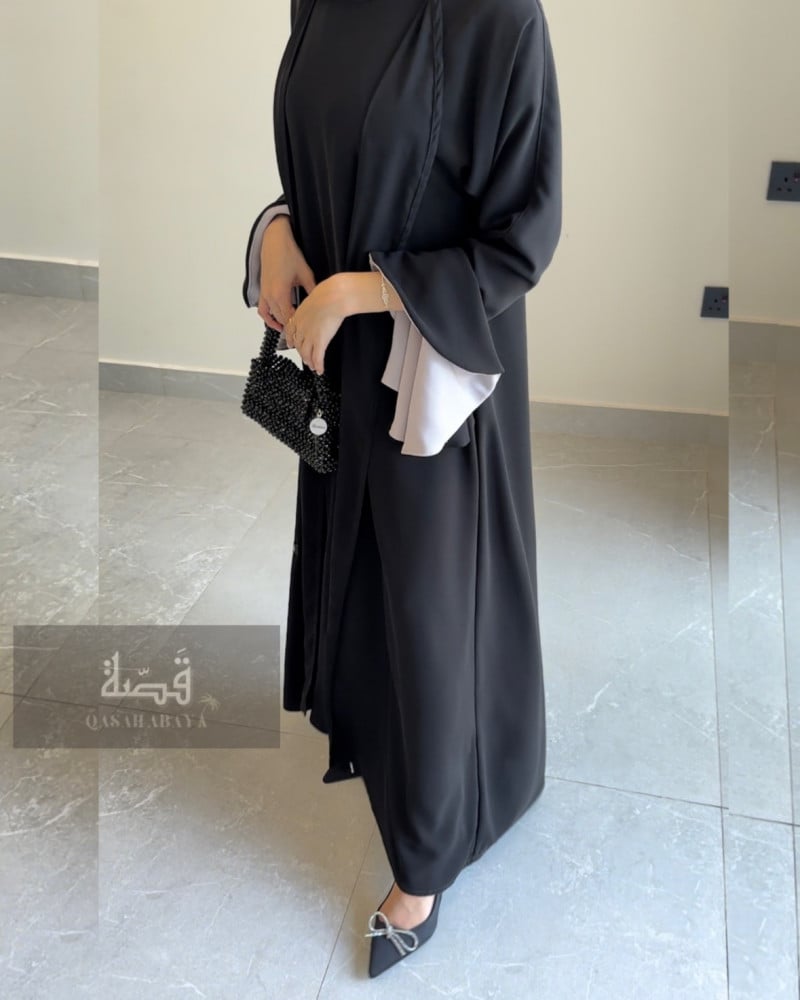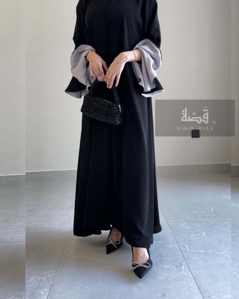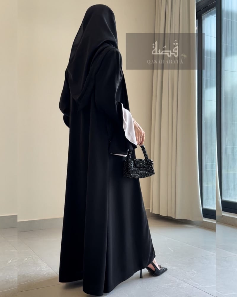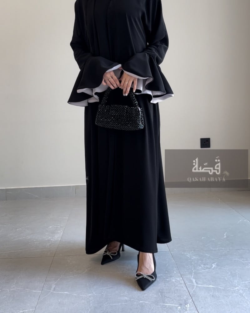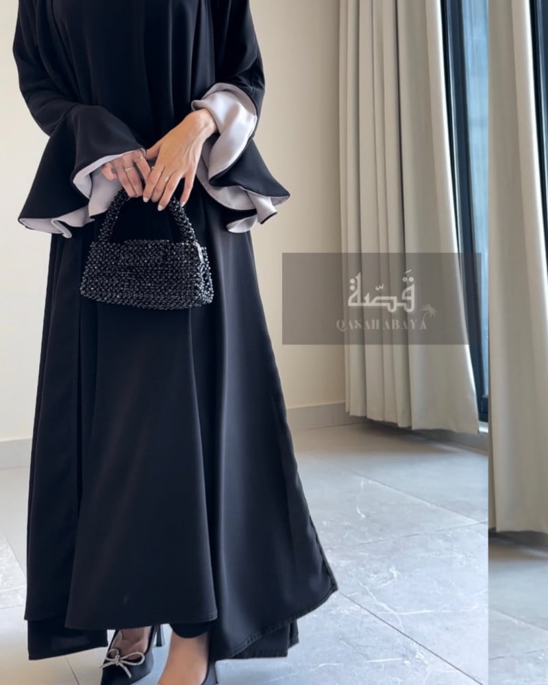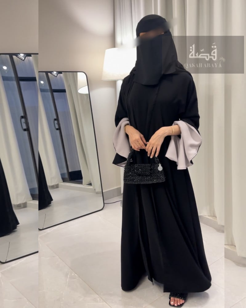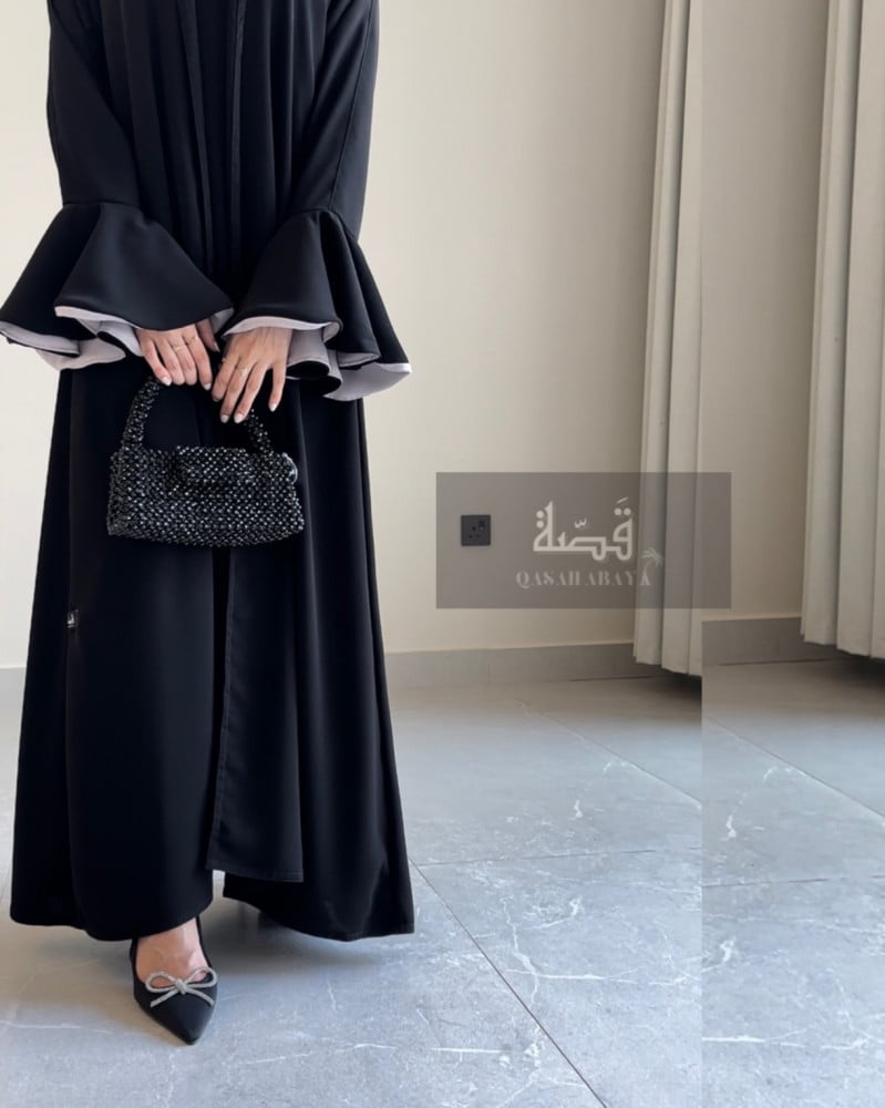 عباية نص كلوش مع كم كلوش مبطن باللون البيج