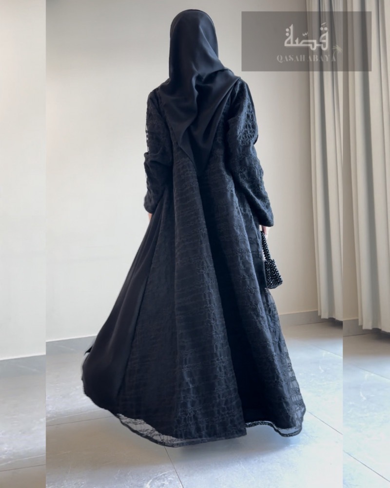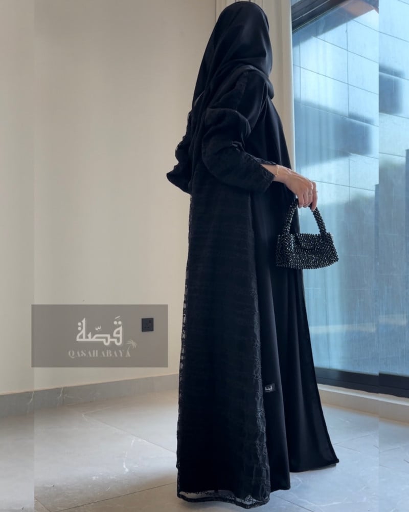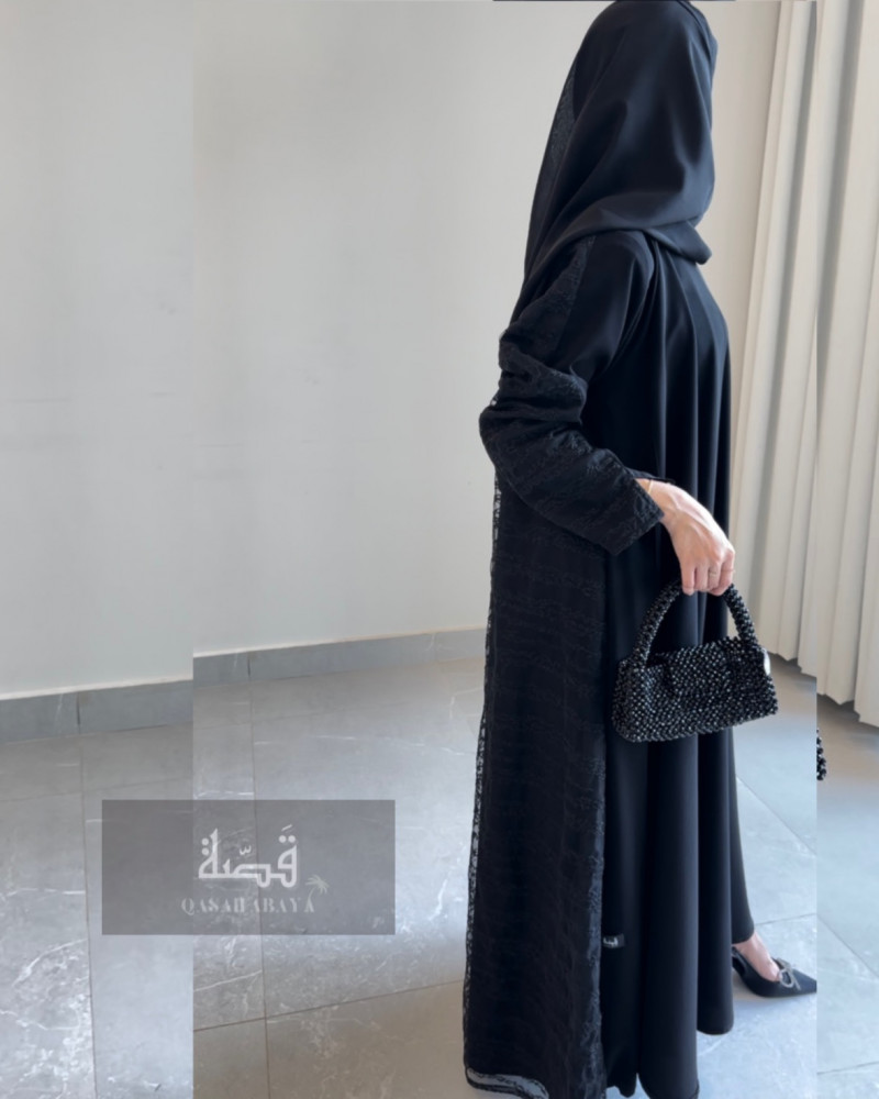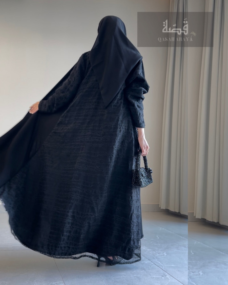 عباية قصة A ( كلوش ) بتدخيلة تل مطرز بالخلف مع فتحة صغيرة بالكم