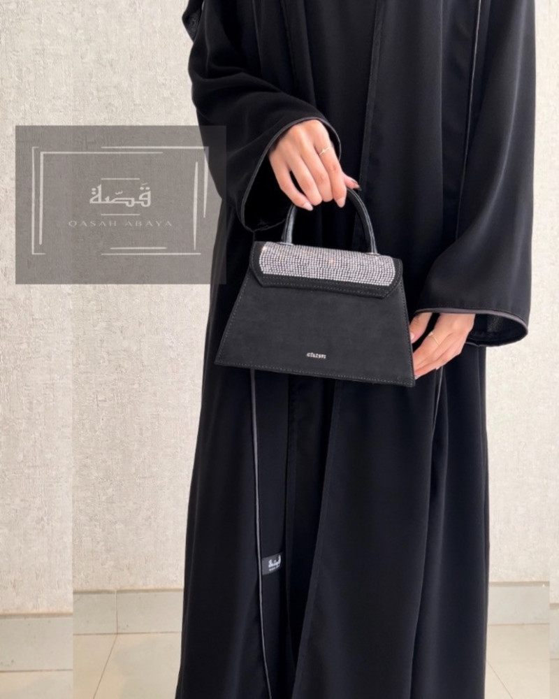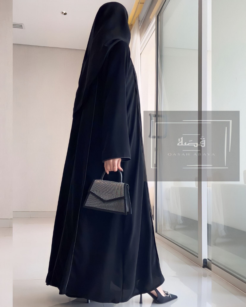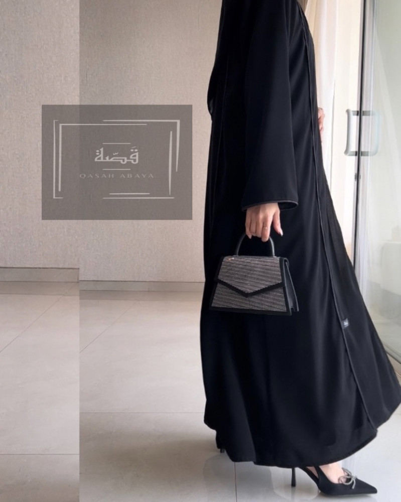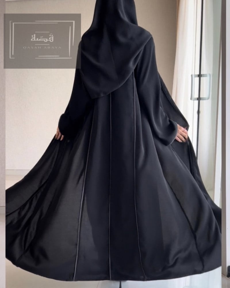 عباية نص كلوش سادة مخططة بخطوط سوداء