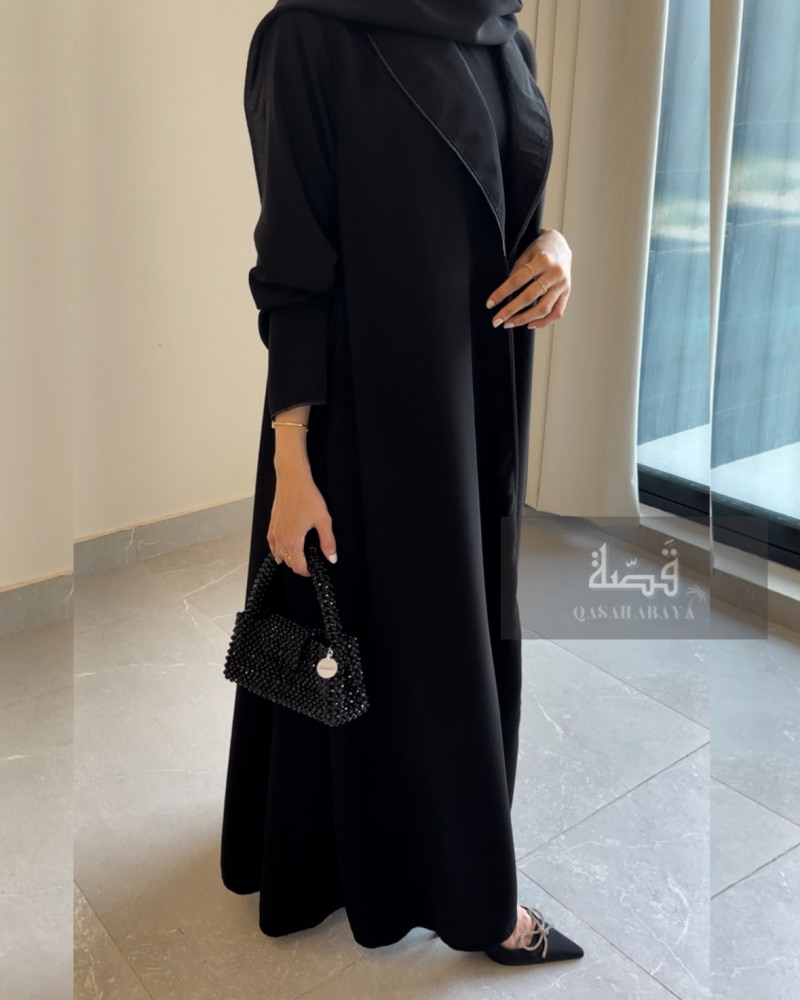 عباية رسمية مع ياقة قصة A (كلوش) مع حدود لمعة خفيفة