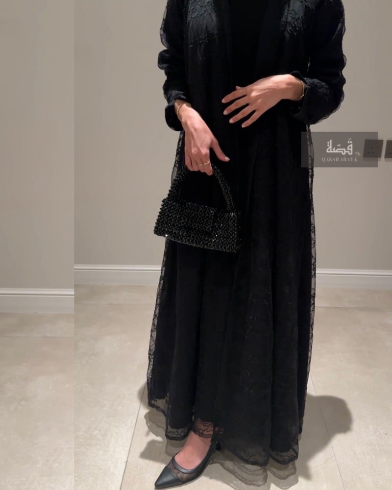 عباية مناسبات صيفية بتطريز عرضي مع فتحة بالكم