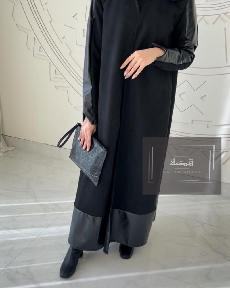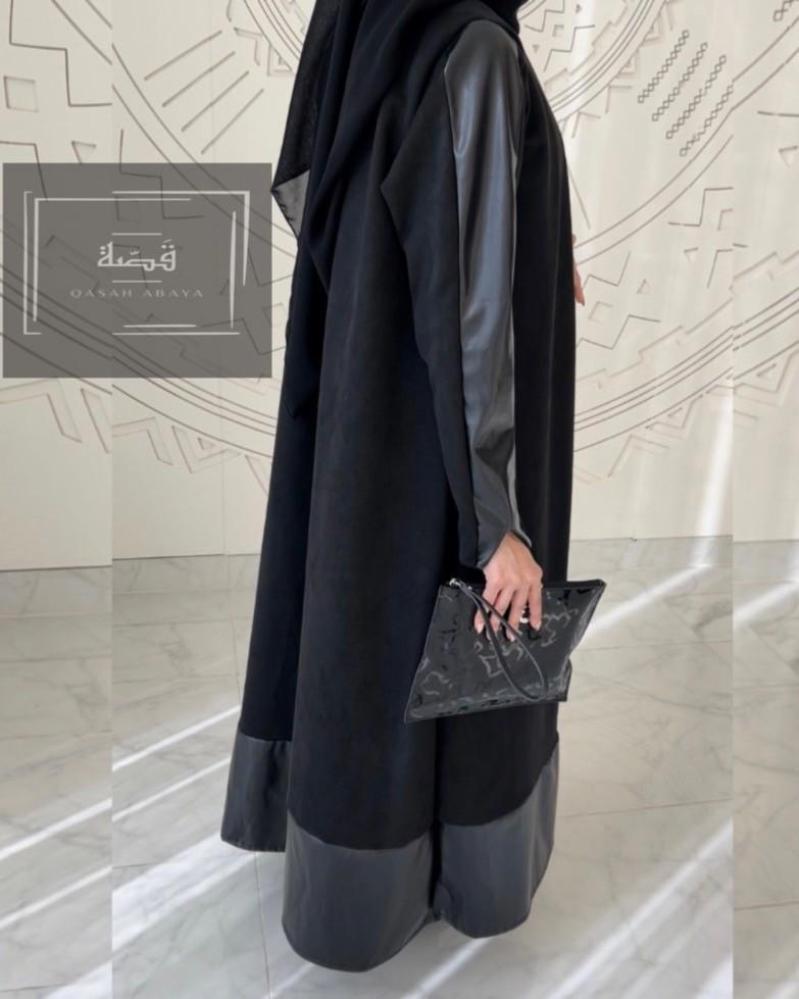 عباية نص كلوش بجزء سفلي واكمام جلد
