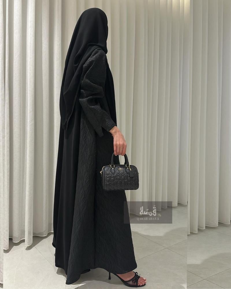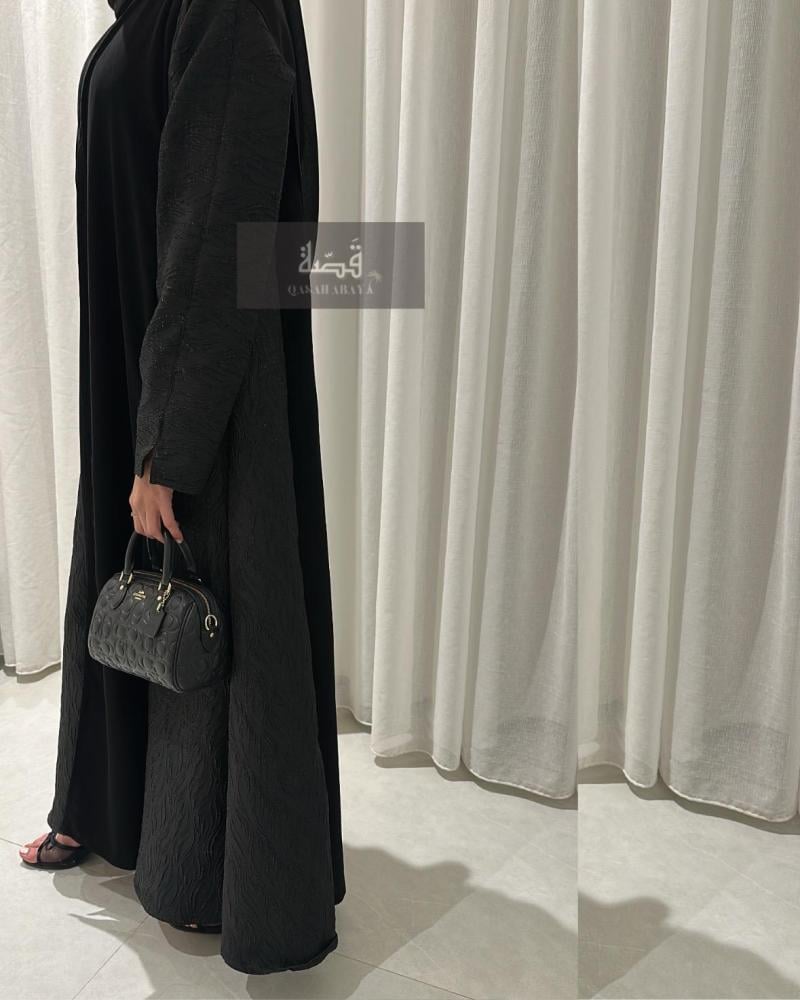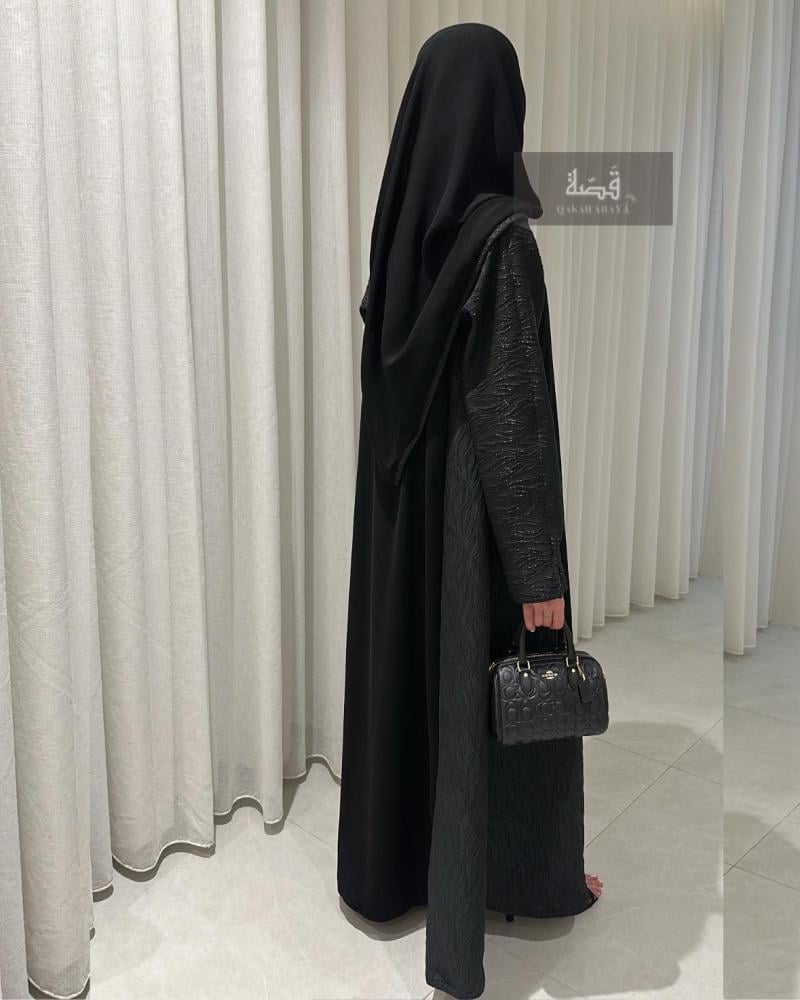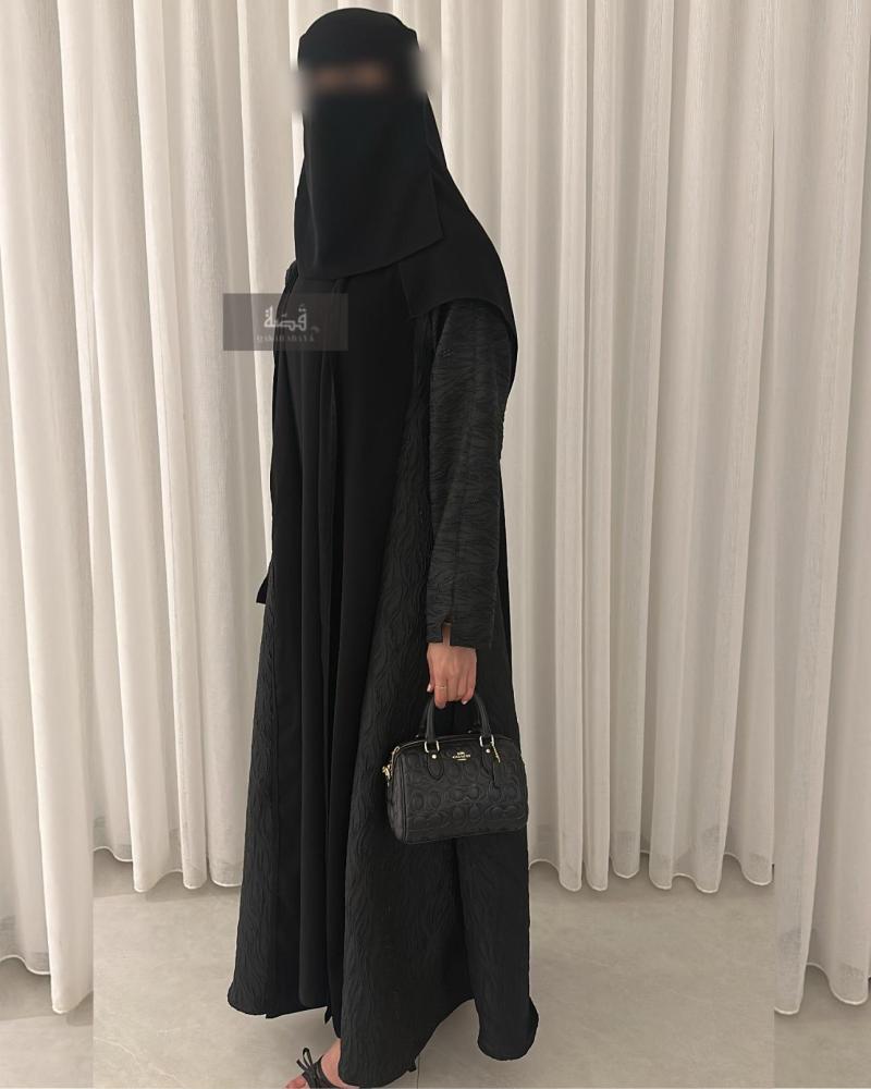 عباية صيفية بتدخيلة قماش تفته بلمعة من الجوانب و الأكمام مع فتحة بالكم قصة A (كلوش)
