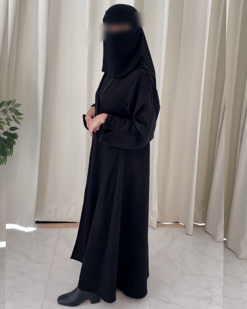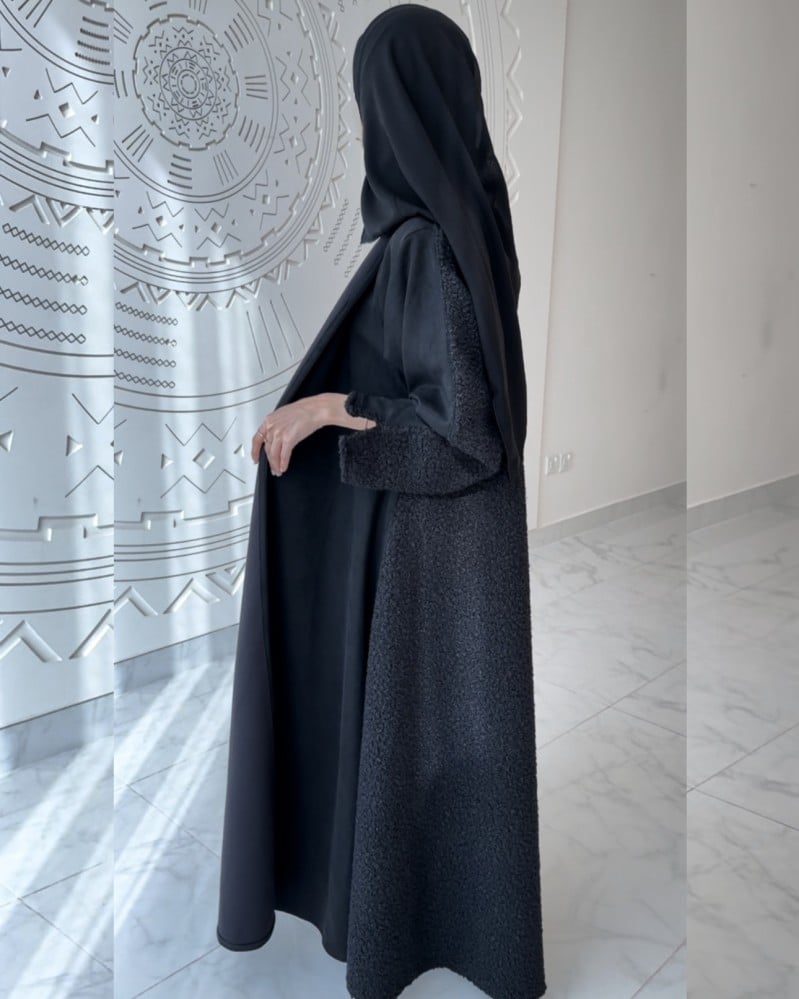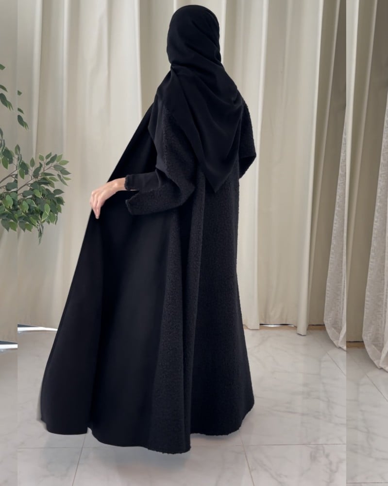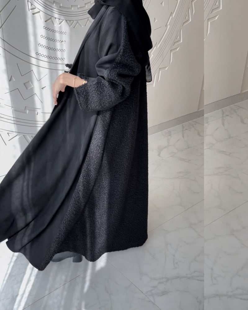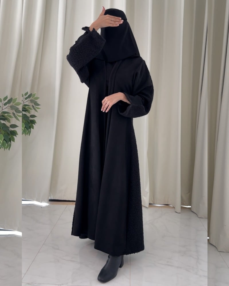 عباية شتوية قصة A (كلوش) مع فرو بالخلف و فتحة بالكم